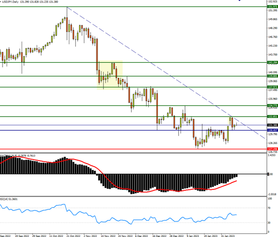 技术上,上方阻力在132.85水平,也是目前下降趋势线的阻力,也是前高点,假如能进一步突破132.85水平将有可能逆转目前的下降趋势,并将挑战134.77、137.97水平。下方关键支持在130.45水平,如跌破130水平,目前大方向上的下降趋势或延续,并将再次测试127水平。